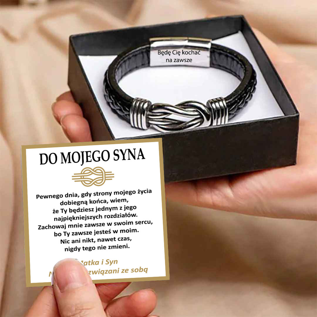 Ta bransoletka z węzłem nieskończoności jest potężnym symbolem Twojej wiecznej miłości i bezwarunkowego wsparcia dla syna, które może nosić każdego dnia. Doskonale łączy styl i emocje, pokazując, że zawsze jesteś przy nim – na każdym kroku jego drogi.